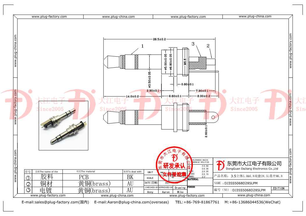 產品說明:3.5mm立體5.0盤3.0厚24.2L 耳機插頭??